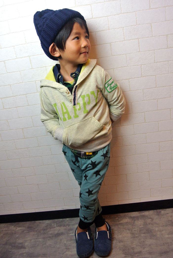 ☆プリントプルオーバーパーカー ☆チェックシャツ ☆星柄スウェットリブパンツ |