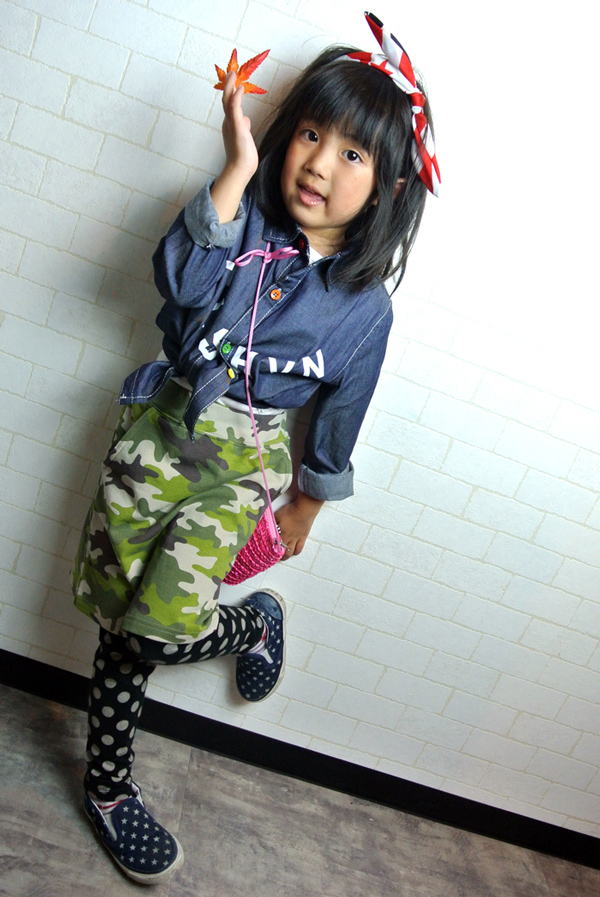 ☆カラフルボタン プリントデニムシャツ ☆迷彩タイトスカート |