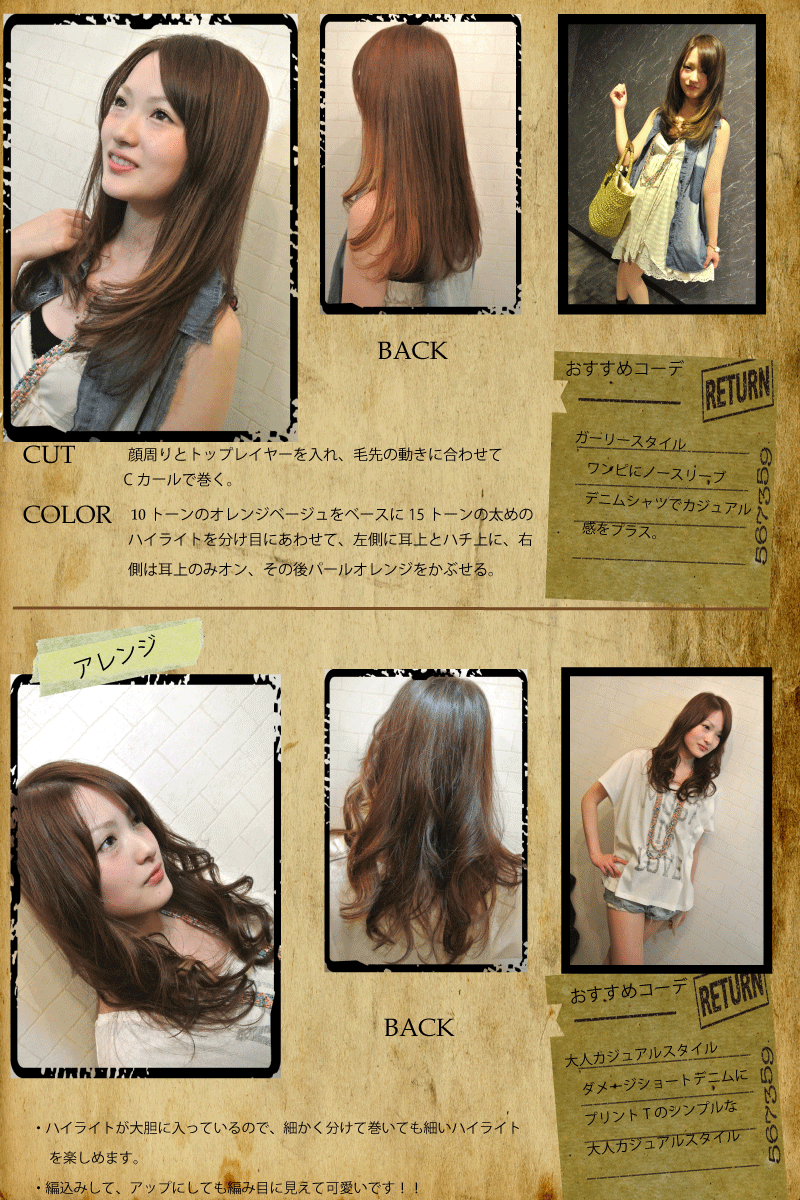 側は耳上のみオン、その後パールオレンジをかぶせる。 ・ハイライトが大胆に入っているので、細かく分けて巻いても細いハイライト を楽しめます。 ・編込みして、アップにしても編み目に見えて可愛いです!! |