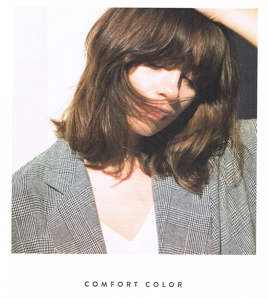 もっと自由に、クリアに。シアーで赤みの出にくい顔料を何層にも重ね合わせ、絶妙な表現が出来ます。 濁りや重さとは無縁の、やわらかい空気感をまとったクリアな仕上がりを表現します。 毛髪の負担を最小限におさえ、施術時間もスピーディーに、カラーリングの時間が快適に。 |